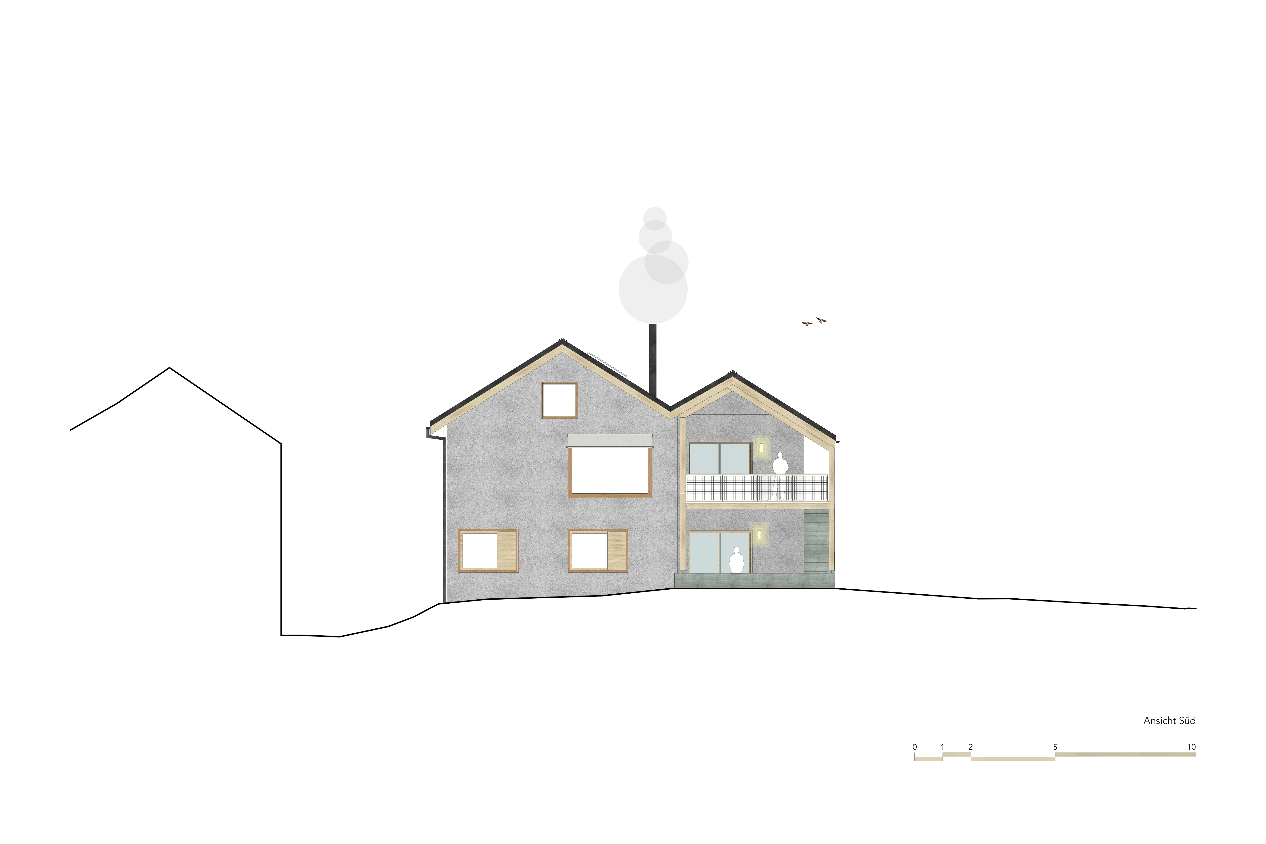 In Vattiz entsteht ein Einfamilienhaus, das wir aus einem vorgegebenen Bauvolumen heraus neu gedacht und eigenständig weiterentwickelt haben.